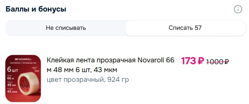 Клейкая лента прозрачная Novaroll 66 м 48 мм 6 шт за 173₽ с бонусами — https://ozon.ru/t/Uyfj6Kp
