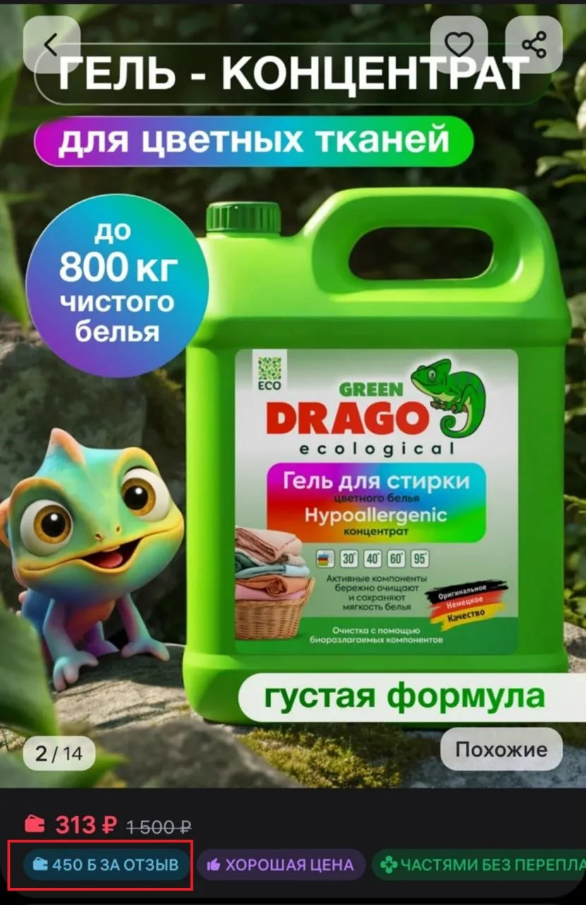 Гель для стирки цветного белья 5 литров автомат Green Drago за 313₽ — https://www.wildberries.ru/catalog/234353582/detail.aspx?size=369288290