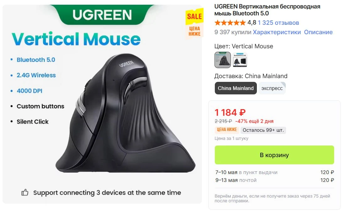 Вертикальная беспроводная мышь Ugreen за 1 184₽ — https://ali.click/4in471r?erid=2SDnjc8xWTk