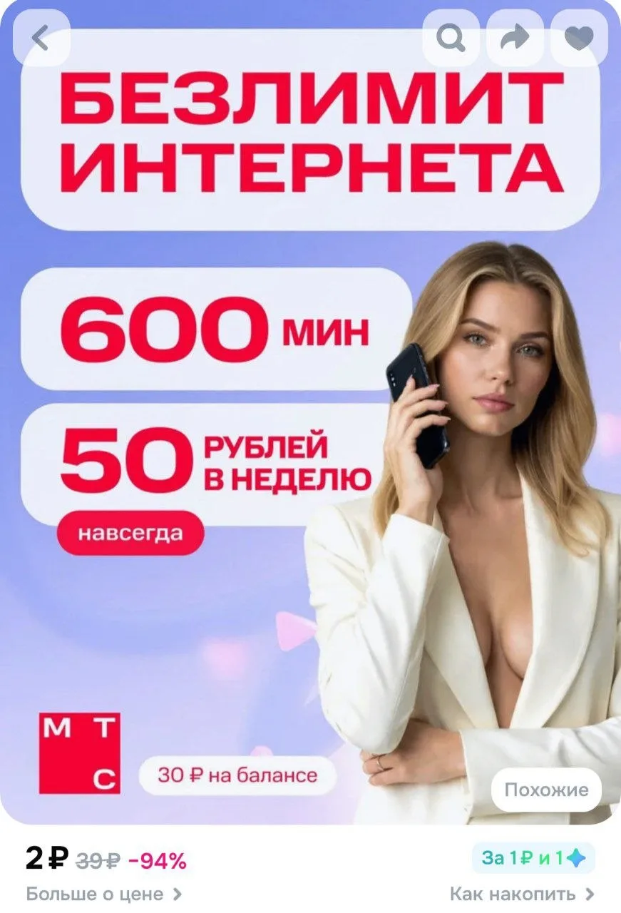 Сим карта МТС с безлимитным интернетом 200 руб/мес (баланс 30р) за 2₽ — https://ozon.ru/t/Gcql8JF