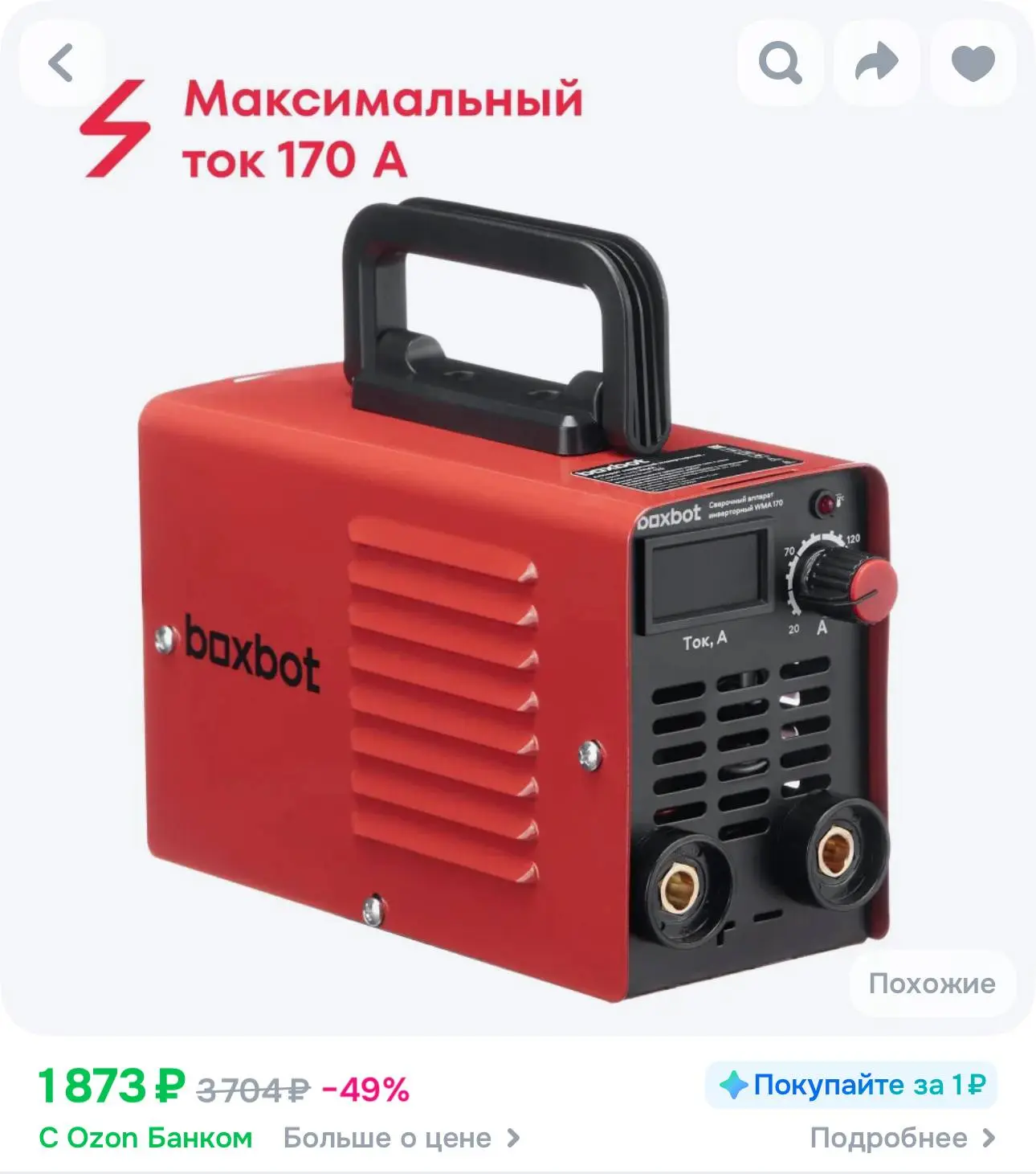 Сварочный аппарат инверторный Boxbot, MMA, 170А, ПВ - 60%, WMA 170 за 1 873₽ — https://ozon.ru/t/wG8QvWB