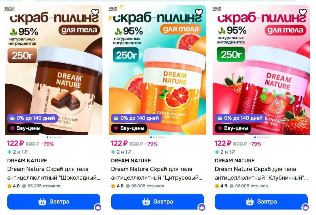 Dream Nature Скраб для тела антицеллюлитный "Шоколадный" 250г за 122₽ - https://ozon.ru/t/UyfO8Kg