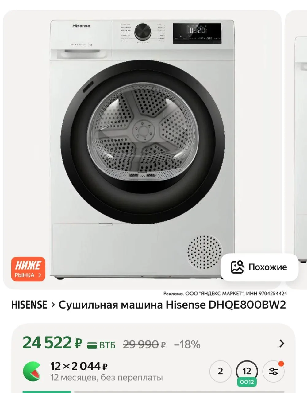 Сушильная машина Hisense за 24 502₽ — https://market.yandex.ru/cc/9KqZQd?erid=5jtCeReNx12oajxVXEJhr2g