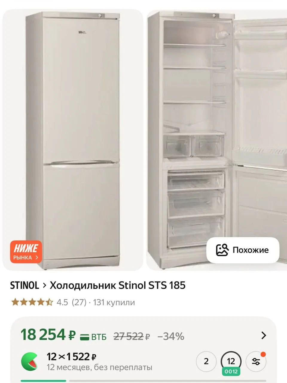 Холодильник Stinol STS 185 318 л за 18 254₽ — https://market.yandex.ru/cc/9KqgkQ?erid=5jtCeReNx12oajxVXEJiBfS