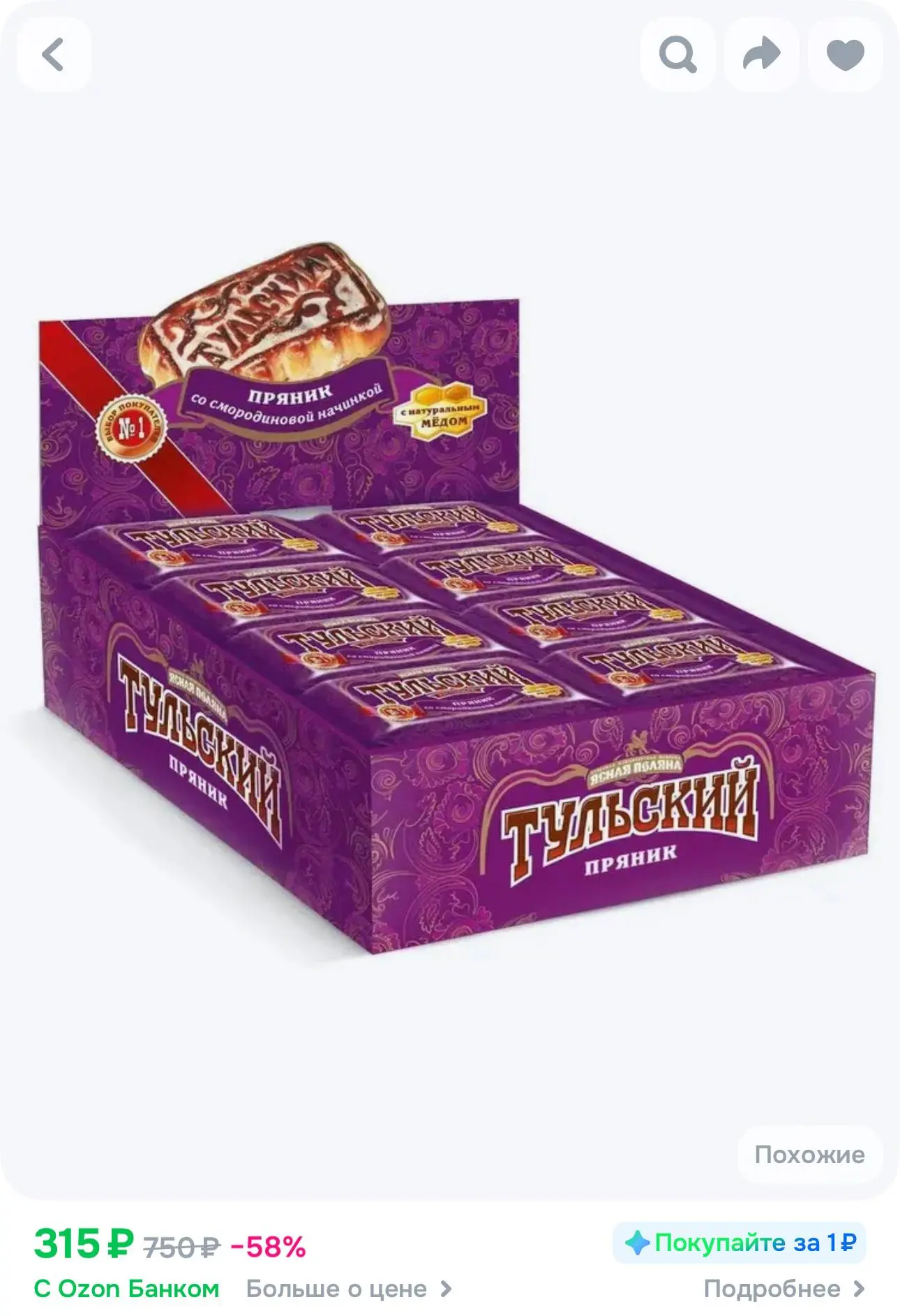 Пряник Тульский со смородиной, 45г х 24шт. за 315₽ — https://ozon.ru/t/AFnMXHF