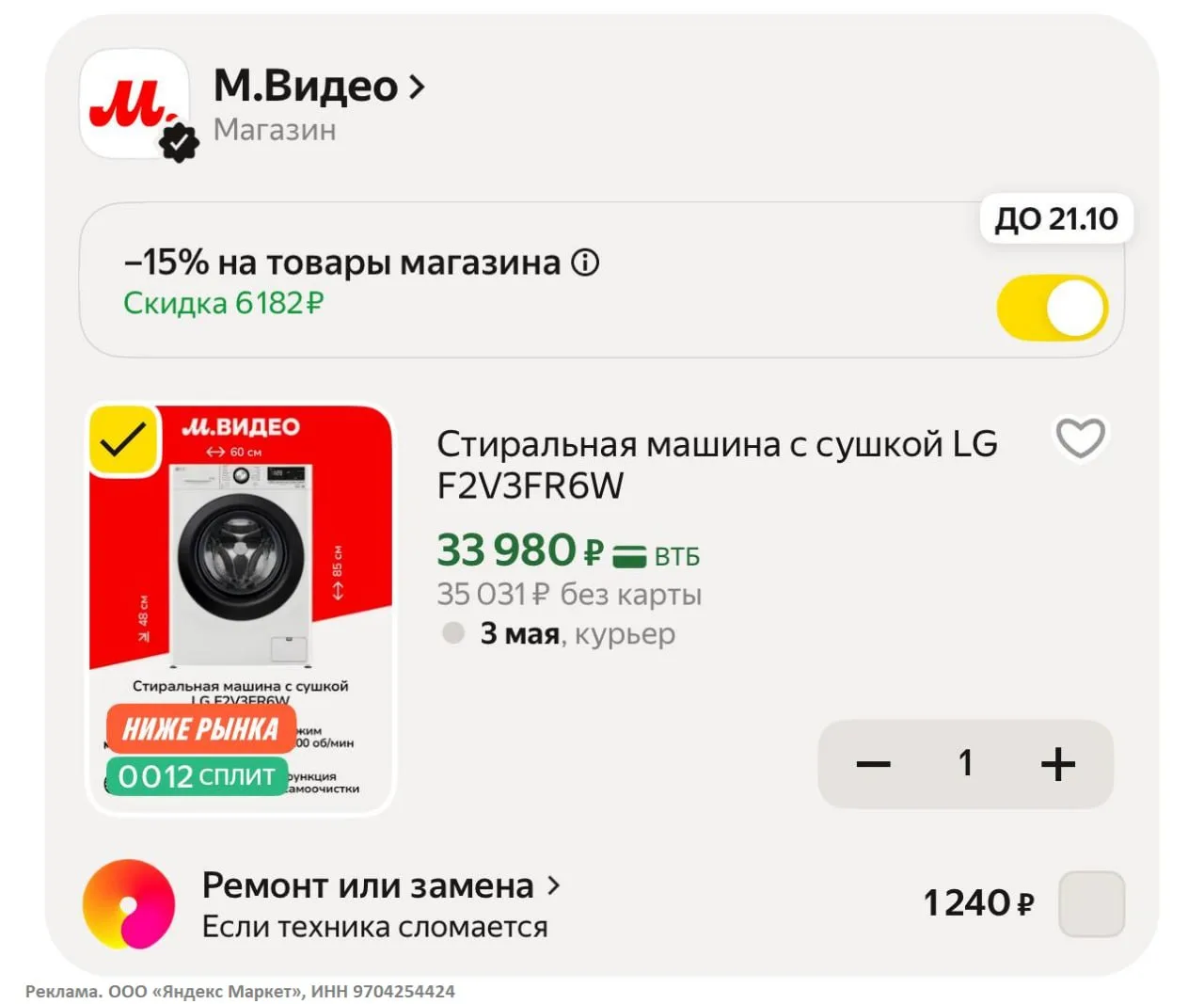 Стиральная машина с сушкой LG F2V3FR6W за 33 980₽ — https://market.yandex.ru/cc/9LCozv?erid=5jtCeReNx12oajxVXLuAdhD