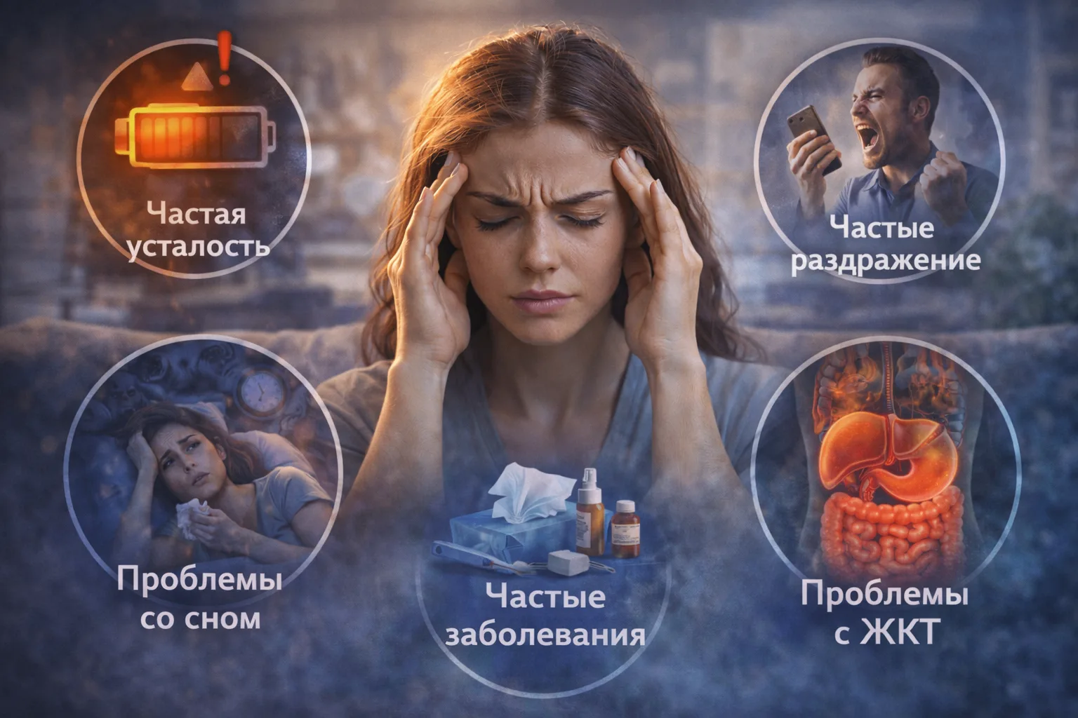 Это признаки дистресса — состояния, в котором организм живёт на остатках ресурсов.